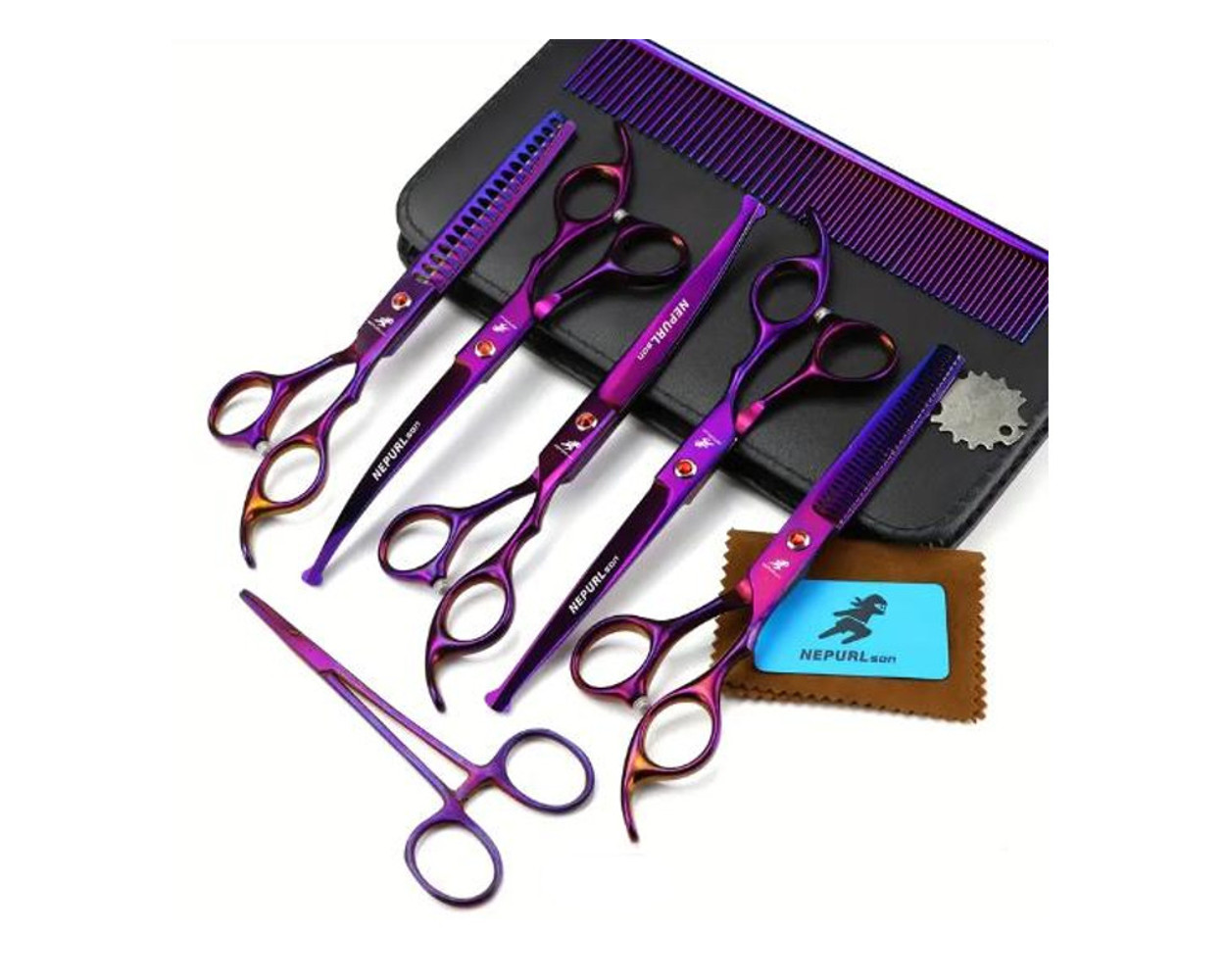 Das 9-teilige professionelle Hundepflege-Set für Hunde und Katzen ist ein Must-Have für jeden Tierbesitzer, der die Pflege seines geliebten Haustiers ernst nimmt. Mit fünf professionellen Tierhaarscheren, darunter eine oben gebogene, eine unten gebogene, eine gerade Schere und zwei Effilierscheren (grob und fein), bietet dieses Set eine breite Palette von Optionen, um das Fell deines Haustiers optimal zu pflegen.