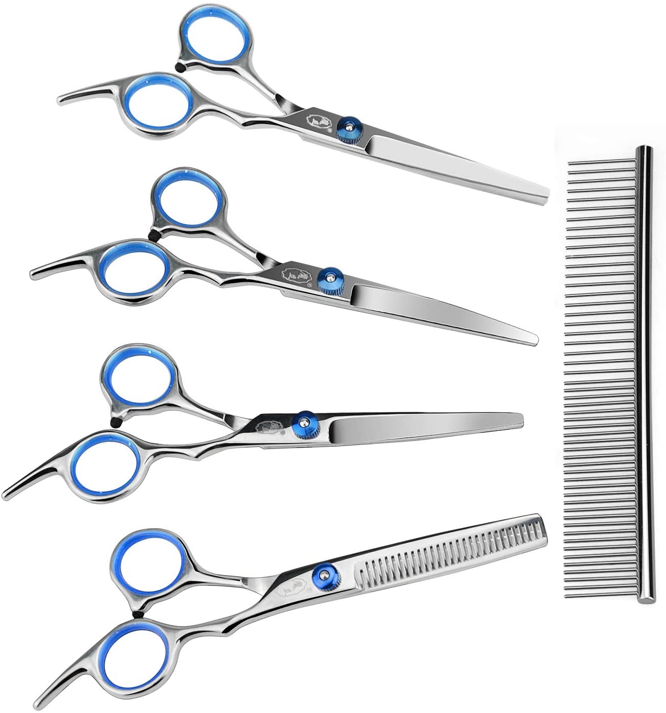 Das 6-teilige professionelle Hundepflege-Set für Hunde und Katzen ist ein Must-Have für jeden Tierbesitzer, Der die Pflege seines geliebten Haustiers ernst nimmt. Mit vier professionellen Tierhaarscheren, darunter eine oben gebogene, eine unten gebogene, eine gerade Schere und eine Effilierschere. Dieses Set bietet eine breite Palette von Optionen, um das Fell deines Haustiers optimal zu pflegen.