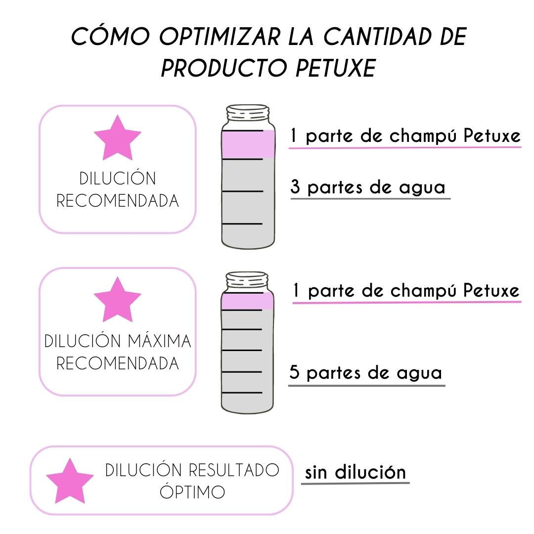 - Vorbereitung: Nach dem Stripping und dem Auftragen des Petuxe-Stripping-Pulvers das Shampoo nach Bedarf des Hundefriseurs direkt verwenden oder mit warmem Wasser verdünnen.