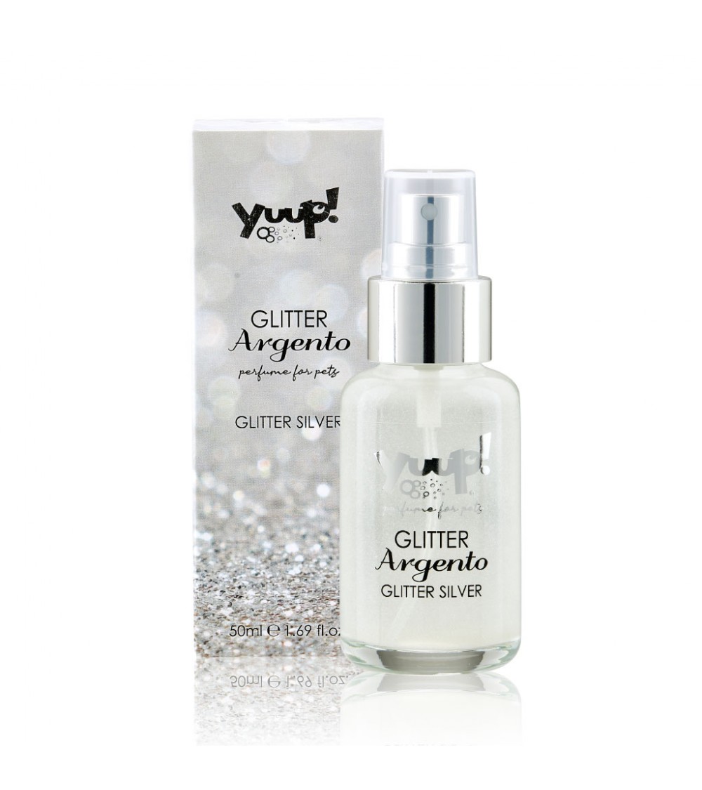 Das Yuup!® Fashion Glitter „Argento“ ist ein exklusives Parfüm für Hunde und Katzen, das eine himmlische Anziehungskraft mit einer funkelnden silbernen Wolke kombiniert. Dieses glamouröse Produkt verleiht dem Fell Ihres Haustieres einen leuchtenden und glitzernden Effekt, der sofort ins Auge fällt. Der Duft ist reich und komplex. Mit Noten von Tahiti-Tiare-Blume, Orangenblüte, Mandarine, Flieder, Jasmin und Ylang-Ylang. Die zusammen eine exotische und verführerische Duftmischung schaffen.