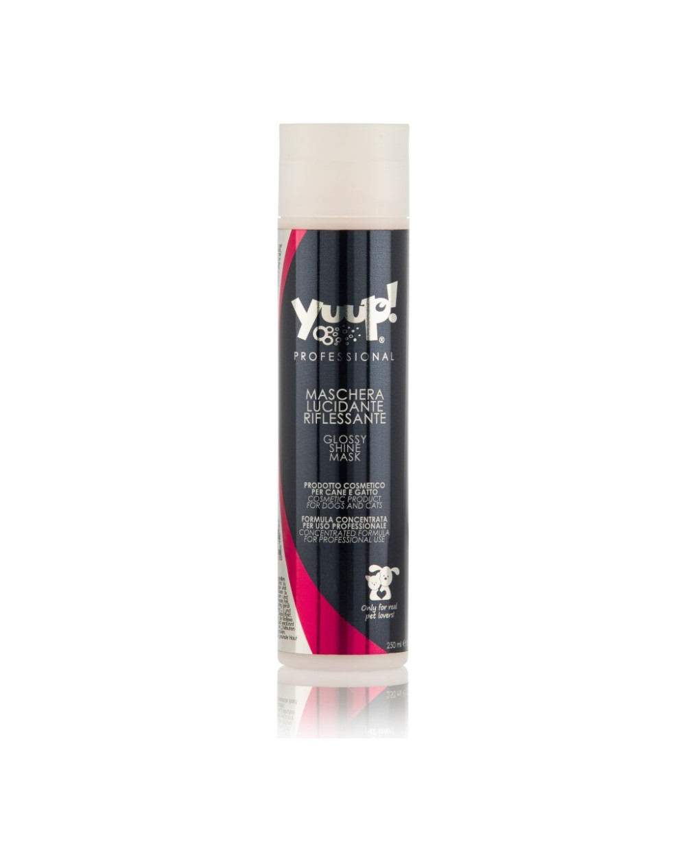 Die Yuup!® Professionelle glättende Glanz-Haarmaske ist eine speziell formulierte Pflegepackung, die entwickelt wurde, um maximale Brillanz und Leuchtkraft zu erzielen. Gleichzeitig die natürliche Farbe und Reflexion des Fells von Hunden und Katzen vor äußeren Einflüssen zu schützen. Diese hochwertige Maske ist für alle Haartypen und -Texturen geeignet, zeigt jedoch besondere Wirksamkeit bei schwarzem und dunklem Fell. Die Formel basiert auf einer sorgfältigen Auswahl von Inhaltsstoffen, die synergetisch wirken, um das Fell zu pflegen und zu schützen.