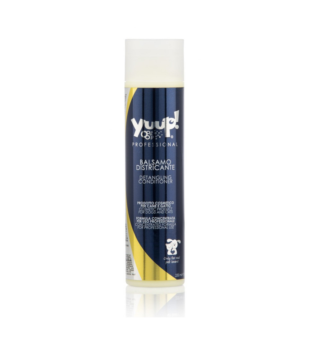 Der Yuup!® Professioneller Entwirrungs-Conditioner ist ein speziell entwickeltes Pflegeprodukt, das das Fell intensiv pflegt und das Entfernen von Knoten erleichtert. Dieser Conditioner ist für alle Haartypen geeignet und ideal für alle Rassen von Hunden und Katzen. Allerdings sollte er nicht auf feinem, dünnem Haar oder rauer Textur angewendet werden, da diese Haartypen eine andere Pflege erfordern könnten.